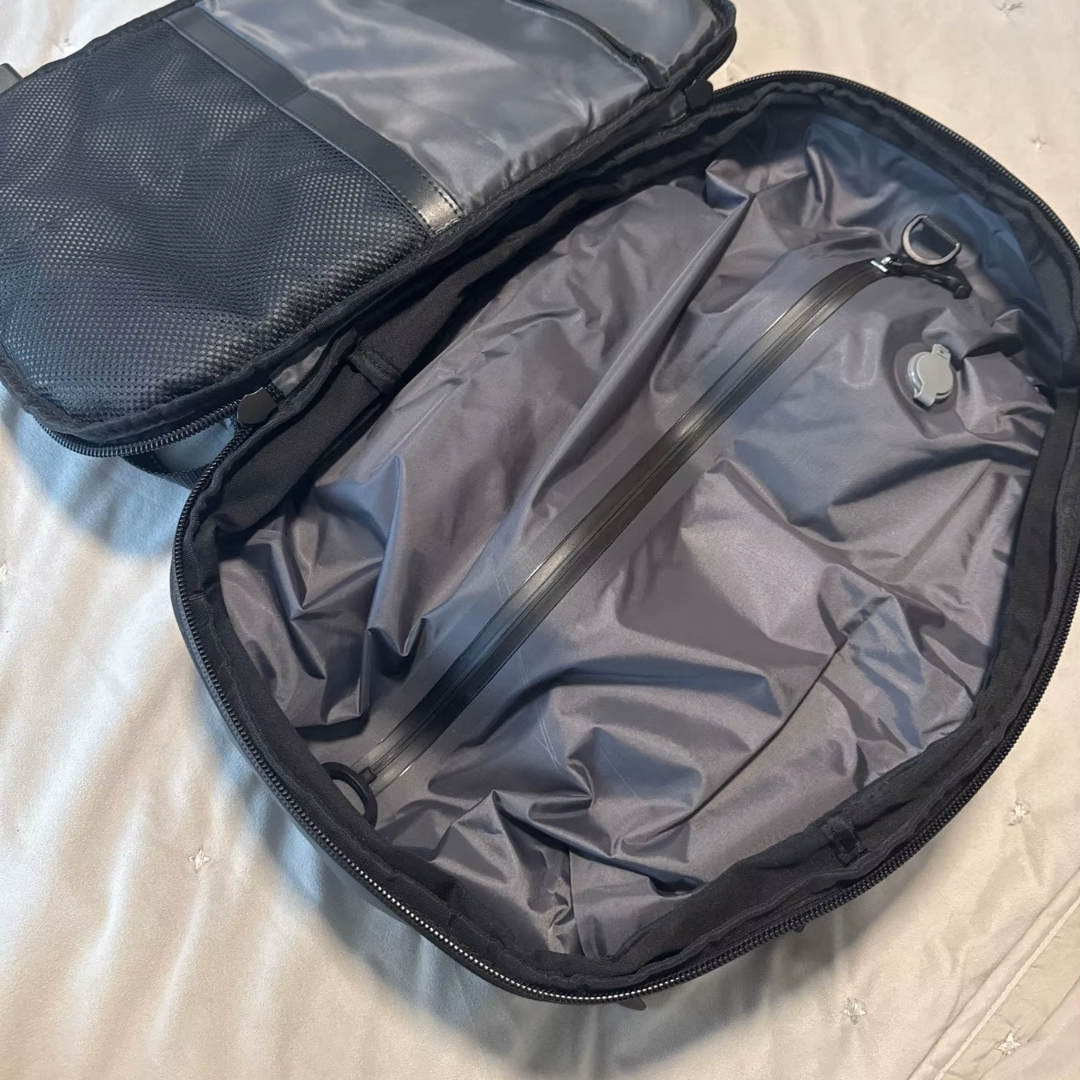 La mochila de viaje VAKUO™ está diseñada para ofrecerte una organización inteligente y eficiente. Gracias a sus múltiples compartimentos y bolsillos estratégicos, podrás mantener cada objeto en su lugar y acceder rápidamente a todo lo que necesites. Su bolsillo hermético y antiolores mantiene separada la ropa limpia de la sucia o lo seco de lo mojado, garantizando frescura y orden durante todo el viaje. ¿Necesitas más espacio? Amplía su capacidad hasta 5 cm adicionales y guarda sin esfuerzo tus compras o recuerdos de última hora.