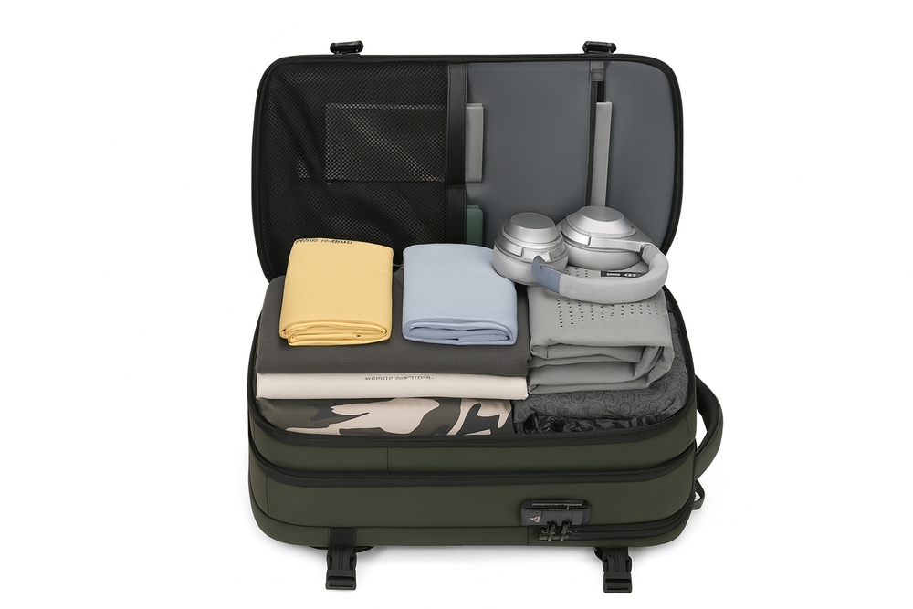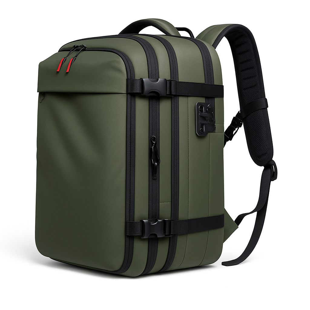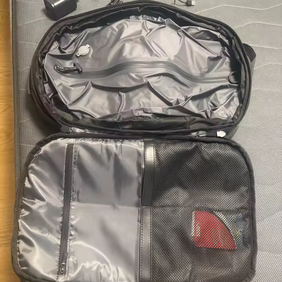 La mochila de viaje VAKUO™ integra un innovador sistema de compresión al vacío que reduce el volumen de tu ropa y objetos, maximizando el espacio disponible. Utiliza la minibomba incluida, una aspiradora o incluso tus manos para comprimir tus pertenencias en segundos. Olvídate del caos al hacer la maleta: lleva todo lo que necesitas y más sin sacrificar comodidad ni estilo. Perfecta para quienes valoran la organización y la libertad al viajar.