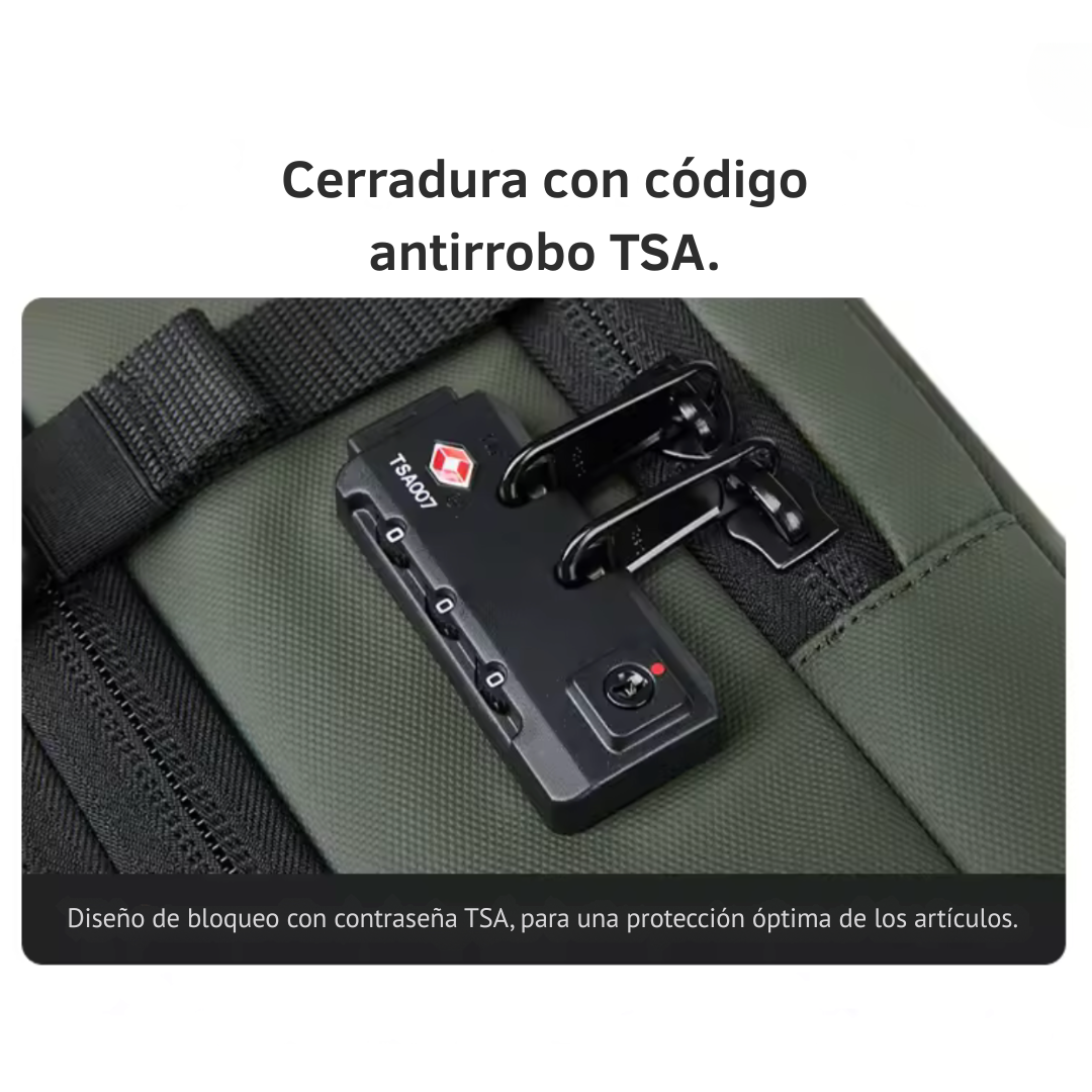 Equipada con un candado antirrobo con combinación numérica, cremalleras ocultas y tejido resistente a cortes. Porque tu tranquilidad es lo primero.