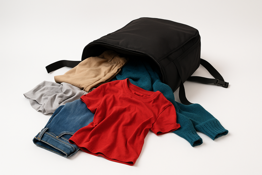 No necesita un plegado especial. Los separadores internos mantienen todo organizado. Cabe fácilmente para 5-7 días.
